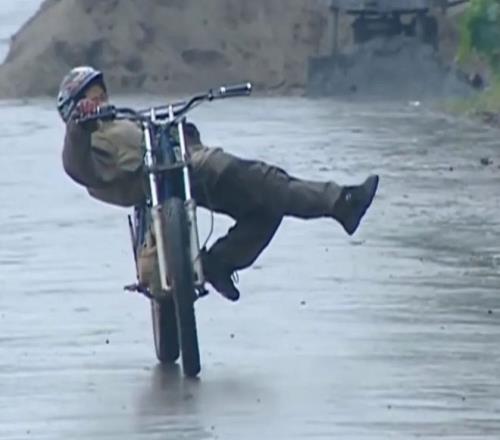 2006年湖南懷化,19歲的張雪騎著一輛破舊的本田摩托車,在泥濘的山路上發(fā)了瘋一樣追趕前方湖南衛(wèi)視《晚間》節(jié)目組的汽車。雨水把他渾身澆透,單薄的衣服貼在身上,冷風(fēng)一吹,嘴唇凍得發(fā)紫,握著車把的手幾乎失去知覺。