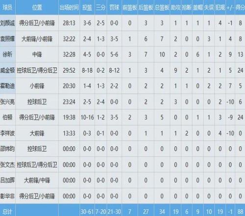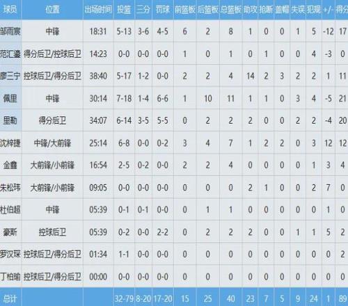 廣州隊(duì)只有三人得分上雙,徐昕貢獻(xiàn)13分10板2助6帽全面數(shù)據(jù)難救主。