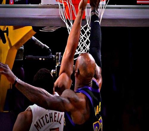 結(jié)果確實如此,比賽開始沒多久,湖人就確立了領(lǐng)先優(yōu)勢。三節(jié)還沒打完,湖人隊替補席就充滿了快活的空氣。第三節(jié)結(jié)束前,隨著拉拉維亞底角三分命中,湖人隊的領(lǐng)先優(yōu)勢來到了27分。所以整個末節(jié)比賽,騎士隊就換上了替補陣容,放棄了掙扎。這場比賽剛開始的時候,中場跳球后米切爾搶到球權(quán),直殺籃下撞開東契奇,準(zhǔn)備幫助球隊取得首分。沒想到成全了詹姆斯,開場不到5秒的時間,被詹姆斯來了一個追身封蓋。似乎是這一球,讓米切爾直接萎了一整場。而也是這一球,讓詹姆斯像打了雞血一樣,背靠背完全看不出一絲疲態(tài)。