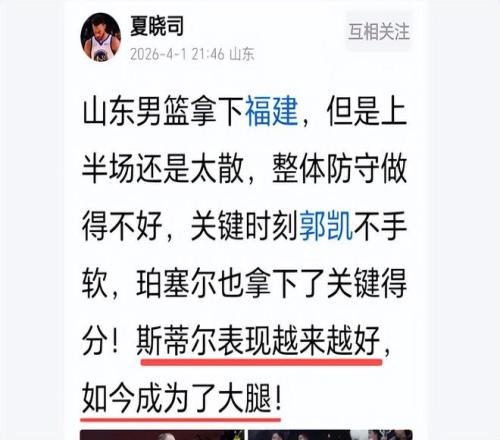 然而意想不到的結果出現(xiàn)了。貝利·斯蒂爾在山東的首秀僅打18分鐘,就砍下16分10板,次戰(zhàn)對陣天津隊,22分鐘轟27分,三分3中3,罰球8中8,兩項命中率100%。在昨晚與福建隊的比賽中,再次拿到高分,僅打18分鐘轟24分,效率驚人,命中率高達77.8%。他昨晚拿到全隊三個第一,得分全隊最高,籃板球全隊最多,罰球命中率并列全隊最高。斯蒂爾最近兩場轟51分,三場轟67分,場均22分,多項數(shù)據(jù)創(chuàng)新高。更讓人感到奇怪的是,他雖然是中鋒,卻打出小外援都沒有的三分命中率,他場均三分命中率居然高達75%(5投4中)山東隊媒體人夏曉司對斯蒂爾贊不絕口,他說斯蒂爾表現(xiàn)越來越好,如今成為了大腿!沒錯,山東隊最近取得兩連勝,這位救火外援立下了頭功。