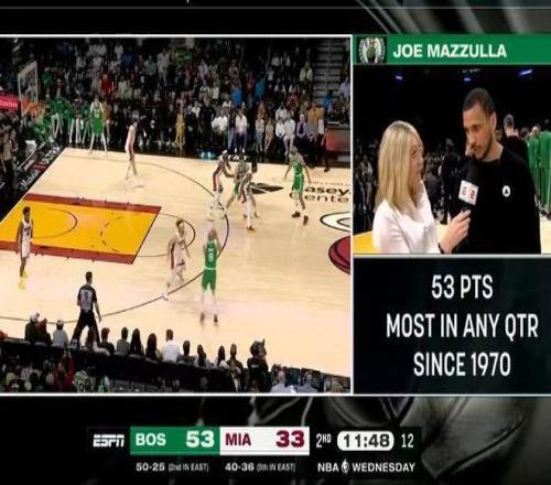 凱爾特人單節(jié)狂轟53+11三分的超級表現(xiàn),創(chuàng)造隊(duì)史自從1970年后,最近56年單節(jié)最高得分紀(jì)錄。