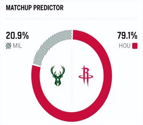 賽前,美媒ESPN對(duì)本場(chǎng)比賽進(jìn)行了勝率預(yù)測(cè),火箭隊(duì)勝率高達(dá)79.1% ,雄鹿勝率則僅有20.9% ,差距還挺明顯。