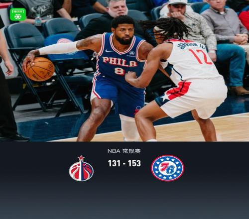 76人153131大勝奇才,喬治39+5+6,馬克西28分
