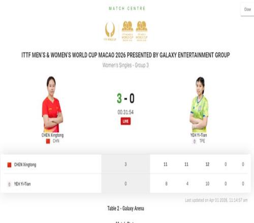 28歲的陳幸同在2026國際乒聯(lián)單打世界杯保持了穩(wěn)健的狀態(tài),她在繼小組賽第一戰(zhàn)3比0擊敗德拉戈曼之后,又在第二戰(zhàn)3比0擊敗葉伊恬,從而兩戰(zhàn)全勝出線,挺進(jìn)了16強(qiáng)。