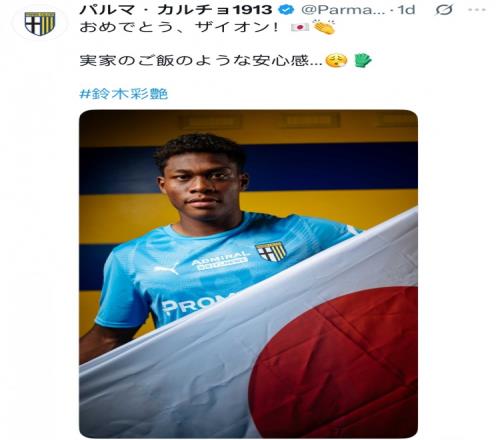 帕爾馬官推稱贊鈴木彩艷:你帶來的安全感,就像在自己家吃飯一樣