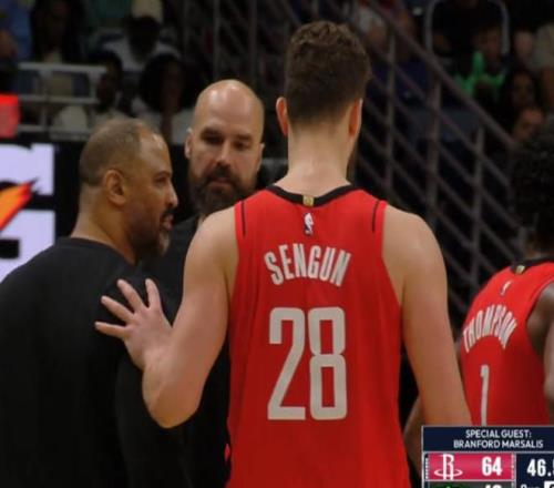 鵜鶘其實(shí)并非徹底擺爛的球隊(duì),他們的選秀權(quán)還在老鷹手中,球隊(duì)整體仍以正常競爭姿態(tài)出戰(zhàn),并沒有刻意輸球。然而,火箭在第二節(jié)突然發(fā)力,打崩了比賽懸念。首節(jié)比賽,火箭開局打得并不順暢,謝潑德被對手連續(xù)針對,效率低下。主教練烏度卡果斷將其換下,換上泰特雙方首節(jié)戰(zhàn)成29-29平手。進(jìn)入第二節(jié),火箭徹底覺醒。申京通過高位組織串聯(lián),阿門提速終結(jié)空接,史密斯內(nèi)外開火,三分和突破都有?;衾盏虾吞┨貏t在外圍支配球權(quán)?;鸺虺鲆徊?5-5的瘋狂高潮,一舉將分差拉開到20分以上,當(dāng)時場上還沒有杜蘭特,靠這一波火箭打花比賽。下半場,火箭越戰(zhàn)越勇,申京的三分球一個接一個命中,很快就把比分徹底打崩。
