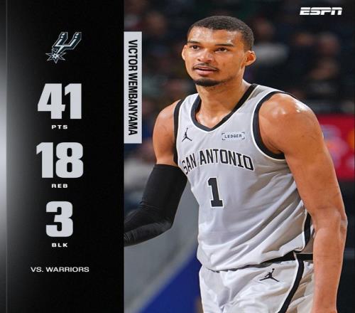 北京時間4月2日,NBA常規(guī)賽,圣安東尼奧馬刺隊127-113大勝金州勇士隊拿到10連勝(現(xiàn)存最長連勝紀錄)。這場比賽馬刺一直壓制勇士,上半場馬刺就領先21分,下半場馬刺的防守專注度有所下滑但還是牢牢掌控局勢,文班亞馬再度拿到41+18的狂暴數(shù)據(jù)。
