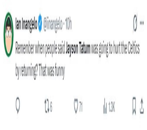 綠凱媒體:還記得當(dāng)時(shí)有人說(shuō)塔圖姆回歸后會(huì)削弱綠凱的實(shí)力嗎?那真是太扯淡了。