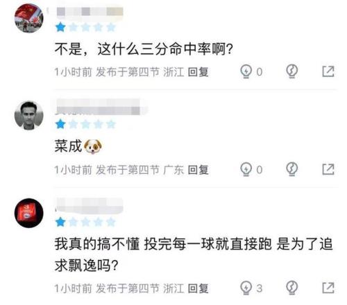 本輪廣廈以94比109不敵深圳的比賽,在小外援塔克狀態(tài)非常一般(10中5,僅得到18分)、胡金秋也未能扛起輸出重?fù)?dān)的情況下,趙巖昊也繼續(xù)掉鏈子,打了16分多鐘的他,9次出手僅命中3球,三分線外5中1,僅得到7分,而他每次投完一球直接就跑,也引起了球迷的熱議:“真搞不懂投完每一球就直接跑,是為了追求飄逸嗎?”