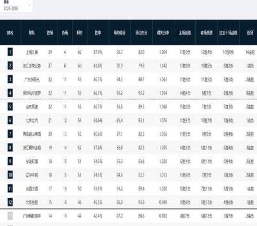 CBA積分榜最新排名!上海基本鎖定常規(guī)賽冠軍,黑馬掀翻衛(wèi)冕冠軍