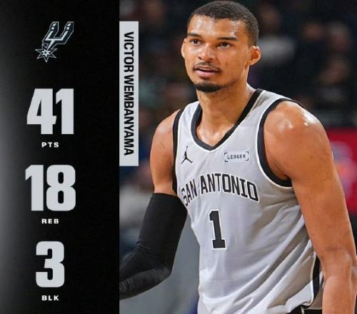4月2日,馬刺127比113輕取勇士,本場(chǎng)比賽文班亞馬出戰(zhàn)29分鐘,全場(chǎng)22投16中,三分球6投2中, 罰球8罰7中,得到41分18籃板3助攻!