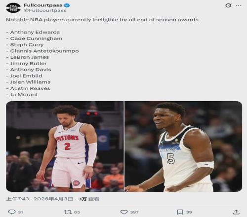 不打了!兩個(gè)NBA狀元!同一天失去評(píng)獎(jiǎng)資格