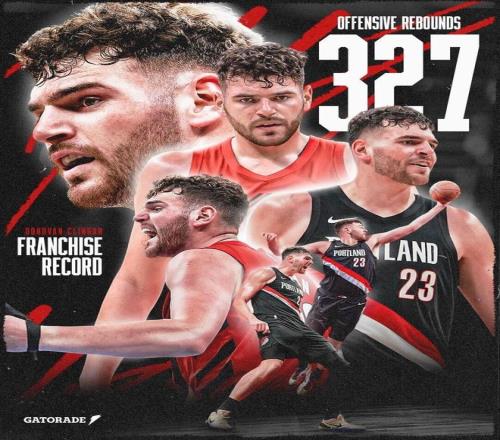 本賽季截至目前,克林根已經(jīng)搶下327個進攻籃板,刷新了開拓者隊史進攻籃板紀錄。