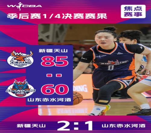 WCBA季后賽1/4決賽第三輪,新疆女籃85-60擊敗山東女籃晉級四強,這場比賽的第二節(jié)新疆隊凈勝10分后開始掌控局勢,第三節(jié)新疆隊一波25-11直接打崩山東隊,最終新疆隊以大比分2-1挺進四強。