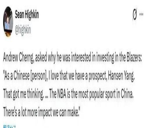 北京時間4月3日,波特蘭開拓者隊記者yovic發(fā)布視頻,全程報道了開拓者隊新老板鄧頓財團今日召開的集團董事會發(fā)布會。視頻中,開拓者新股東Andrew程正昌在發(fā)布會環(huán)節(jié)主動提到了中國球員楊瀚森,而且對其華裔背景進行了解讀。Andrew程正昌表示,實際上自己一開始并沒有計劃參與收購開拓者隊,因為自己不住在這里,但是作為一名中國人(Chinese,這是程正昌的原話),我很喜歡球隊擁有楊瀚森這一事實!