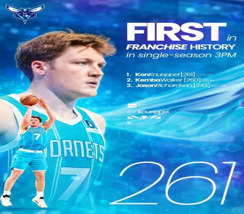 不僅是創(chuàng)造隊史紀錄,克努佩爾已經(jīng)大幅刷新NBA新秀球員單賽季三分命中數(shù)歷史紀錄,并且有望成為NBA歷史上首位新秀賽季就拿下三分王的球員。