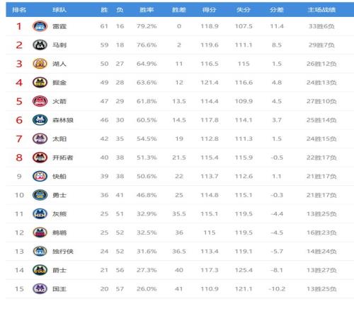 今日比賽后快船、開拓者排名互換,鵜鶘、灰熊排名互換,其他西部球隊(duì)排名不變。