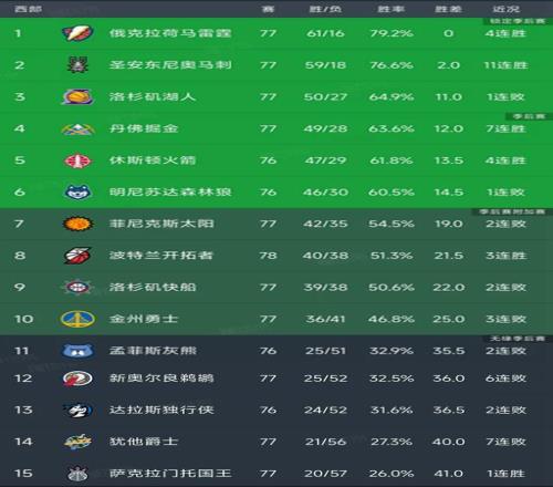 北京時間4月3日,今日的NBA常規(guī)賽全部結束,西部球隊至少打完了76場,最多進行了78場,我們看看最新的積分榜排名!