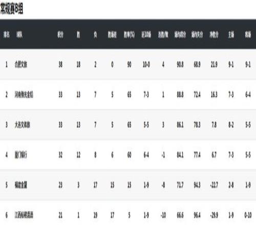 至于B組前4名球隊(duì)均至少12勝,B組第一的合肥女籃18勝2負(fù),而B組后兩名的福建女籃僅3勝17負(fù),江西女籃低至1勝19負(fù)。