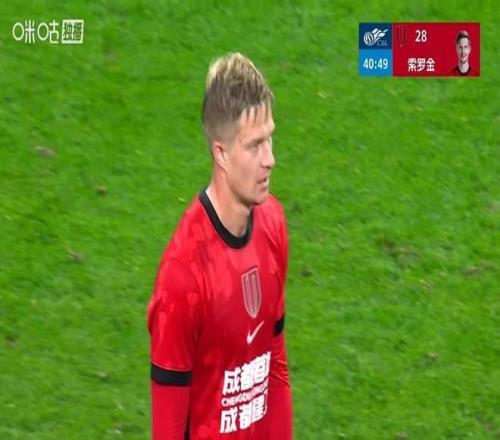 第40分鐘,持續(xù)圍攻的成都蓉城再度創(chuàng)造出機(jī)會(huì),羅慕洛射門(mén)被撲出,索羅金補(bǔ)射斬獲個(gè)人中超首球,成都蓉城半場(chǎng)前將比分?jǐn)U大為2-0。