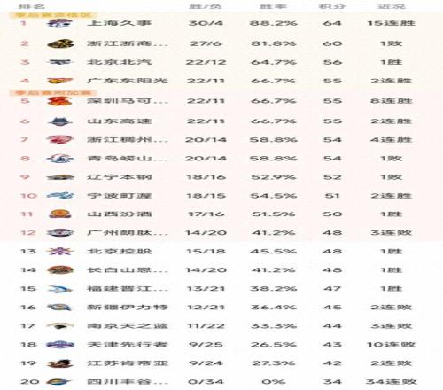 隨著上海15連勝,遼寧5分憾負(fù),CBA最新排名出爐!北京排第3