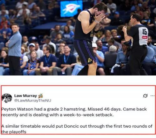北京時間4月4日,湖人官方發(fā)布重磅官宣:核心盧卡·東契奇確診右腿筋二級拉傷,這一傷病直接擊碎了湖人的季后賽爭冠藍圖。醫(yī)學數(shù)據顯示,二級腿筋拉傷為肌纖維部分撕裂,康復周期需3-6周,而NBA季后賽僅15天后便將開打,東契奇大概率缺席前兩輪全部比賽。失去絕對核心的湖人戰(zhàn)力斷崖式下跌,被迫啟動應急方案,敲定三大關鍵轉變,試圖在絕境中穩(wěn)住季后賽格局。此次傷情的嚴重性遠超預期。醫(yī)學專家Stotts明確,二級拉傷平均缺席35天(約14.7場比賽),雖存在個體差異——阿隆·戈登曾3天倉促復出,但佩頓·沃特森同傷勢缺席46天且反復難愈,足見腿筋傷勢的不可控性。
