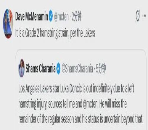 北京時(shí)間4月4日,ESPN記者Shams爆料,湖人當(dāng)家球星盧卡-東契奇因?yàn)樽笸冉顐麆?shì)無限期休戰(zhàn),可以確定的是東契奇將缺席剩余所有的常規(guī)賽。Shams作為后沃神時(shí)代最權(quán)威的記者,他的首發(fā)意味著給湖人隊(duì)宣判了死刑。
