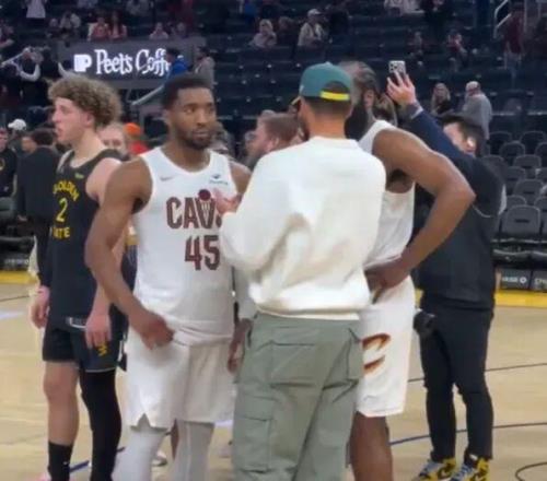 賽后,庫(kù)里與米切爾哈登相聊正歡