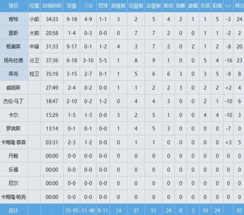 楊瀚森獨(dú)木難支,投籃10中7貢獻(xiàn)16分2板1助1帽,全隊(duì)唯一得分上雙的球員,而對(duì)面就已經(jīng)有3名球員得分上雙。