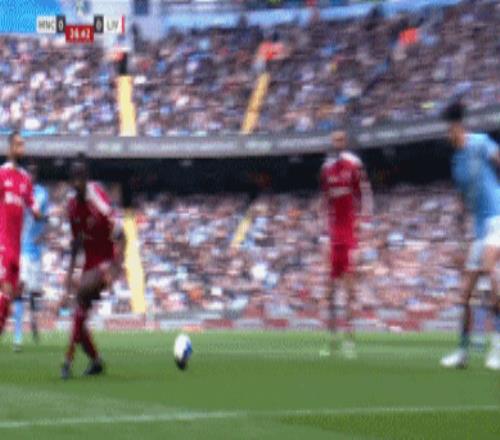 曼城前場推進,努內斯壓上助攻,謝爾基分球,塞梅尼奧右路套上傳中,薩拉赫扛著科納特頭球攻門得手,曼城2-0領先!