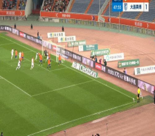 第48分鐘,斯坦丘右路角球傳中,馬萊萊球門區(qū)中路高高躍起甩頭破門。馬萊萊梅開二度,打入本賽季中超第3球,大連英博海發(fā)2-0領(lǐng)先!
