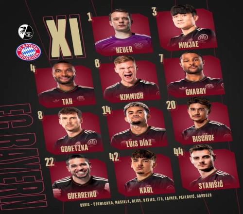 北京時間4月4日21:30,德甲第28輪,拜仁慕尼黑客場挑戰(zhàn)弗賴堡,賽前雙方首發(fā)陣容陸續(xù)公布: