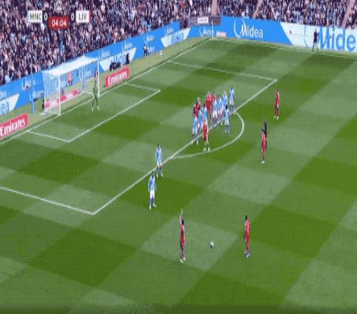 第36分鐘,努內(nèi)斯禁區(qū)內(nèi)傳球,范迪克如同伐木一般放倒了奧萊利,奧利弗迅速將手指向點(diǎn)球點(diǎn)。