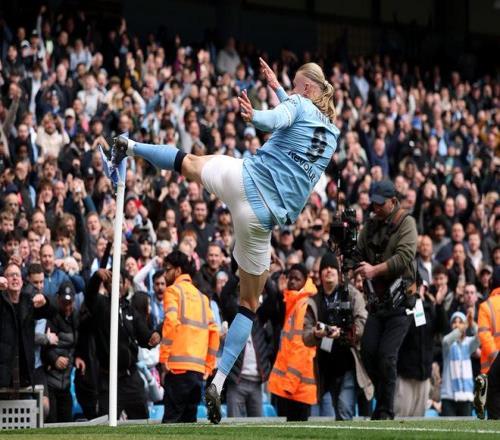 此役主場(chǎng)對(duì)陣?yán)锲?,哈蘭德在比賽上半場(chǎng)打入兩球,下半場(chǎng)第57分鐘再入一球,上演帽子戲法。
