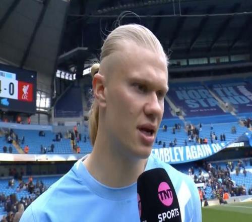 足總杯1/4決賽,曼城主場4-0大勝利物浦,賽后,此役上演帽子戲法的哈蘭德接受了TNT體育的采訪。