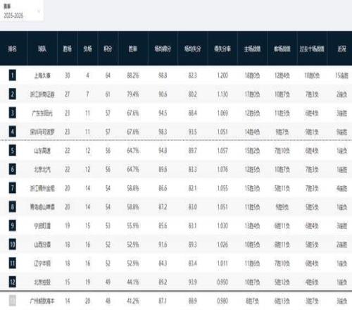 CBA排名又亂了!廣東大勝殺回第三,黑馬吊打山東,遼寧跌至第11