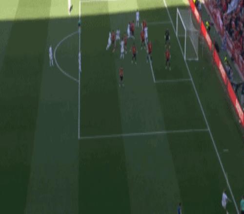 第88分鐘,阿諾德角球傳中,米利唐高高躍起頭球攻門,直掛球門右上角,羅曼這次無能為力,皇馬扳平,1-1!