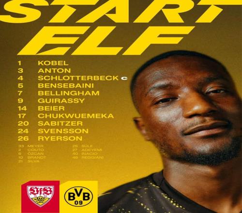 多特客戰(zhàn)斯圖加特:吉拉西、丘庫(kù)埃梅卡、喬布貝林厄姆首發(fā)