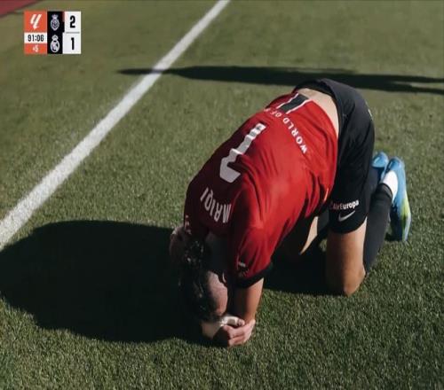 第80分鐘,皇馬前場(chǎng)獲得一個(gè)位置非常不錯(cuò)的定位球,但是米利唐的頭球遺憾高出橫梁。阿韋洛亞雖然接連做出換人調(diào)整,但是進(jìn)攻端的效率卻始終沒(méi)有提高。但是第88分鐘,皇馬利用角球的機(jī)會(huì),由米利唐頂進(jìn)球門(mén),1:1!皇馬終于扳平比分。補(bǔ)時(shí)進(jìn)入第一分鐘,馬略卡反擊到禁區(qū),穆里奇停球勁射,2:1!幫助馬略卡再度取得領(lǐng)先,進(jìn)球后的穆里奇流淚盡情發(fā)泄。