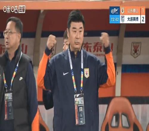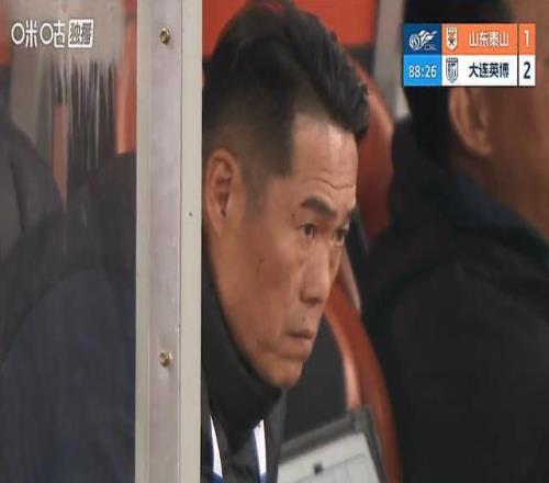 追回1分后,山東泰山一鼓作氣試圖再進(jìn)1球,大連英博打起12分精神不再給機(jī)會。球隊遲遲無法追平比分,韓鵬在場邊來回兜圈......。相反,名義主教練宿茂臻卻穩(wěn)坐替補(bǔ)席(下圖),若有所思。