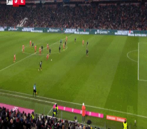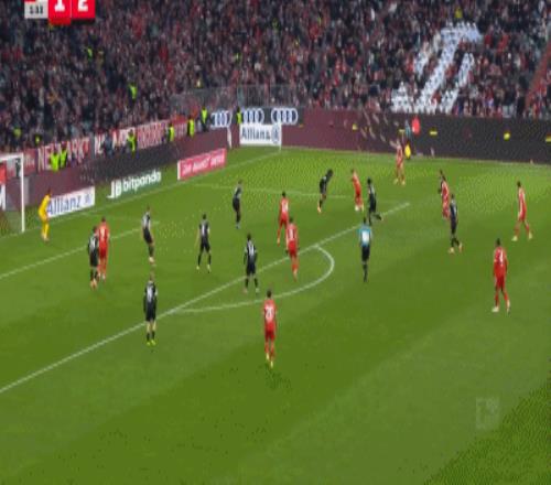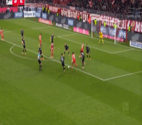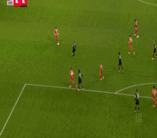 第45+2分鐘,互相傳射,卡爾助攻奧利塞推射破門,拜仁2-2扳平!