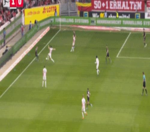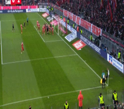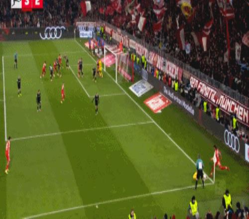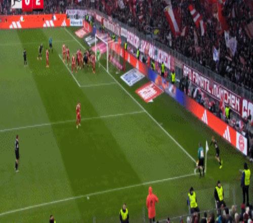 第17分鐘,又是角球,曼贊比頭球破門,拜仁0-2落后弗賴堡!