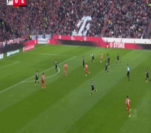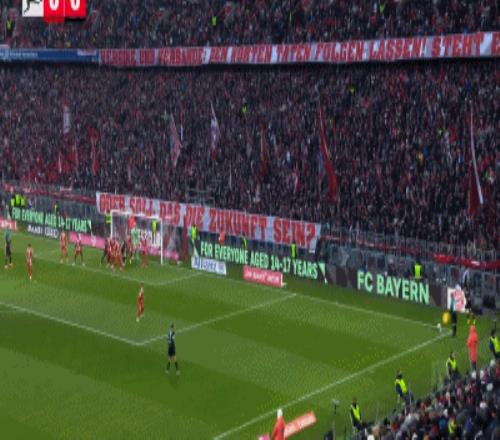 第81分鐘,比朔夫禁區(qū)弧頂遠射破門,拜仁扳回一球,1-2落后弗賴堡