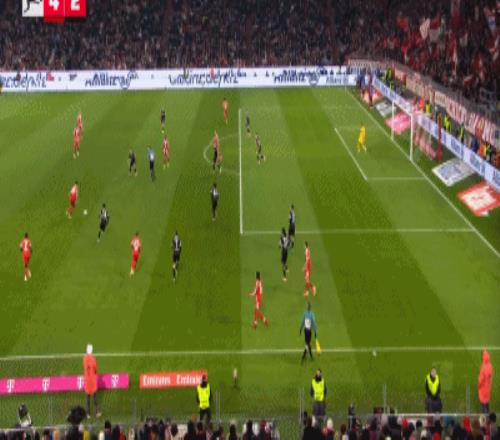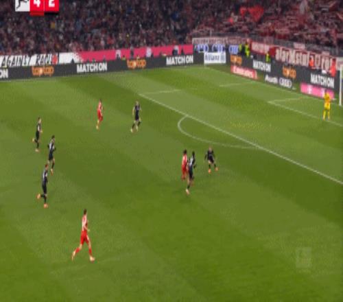 第55分鐘,于帕推射破門,拜仁3-2反超弗賴堡!