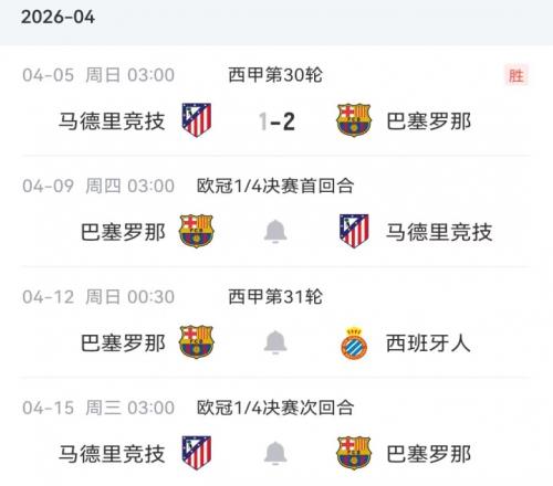 這是雙方近十天內(nèi)三次交手的首場(chǎng)比賽,四天后(4月9日凌晨)雙方就將在諾坎普迎來歐冠1/4決賽首回合的較量。