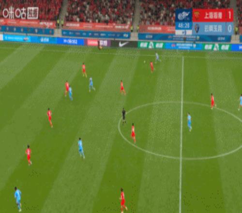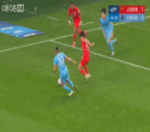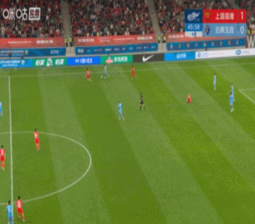 上半場(chǎng)補(bǔ)時(shí)12分鐘,上半場(chǎng)結(jié)束,上海海港1-0云南玉昆。