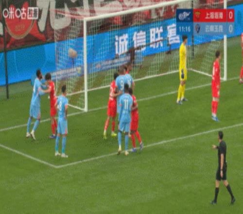 第67分鐘,海港向禁區(qū)直塞被干擾,楊希鏟搶犯規(guī),隨后武磊的打門也被門將擋出?!?/p>