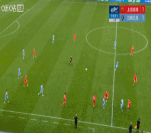 第90+8分鐘,玉昆左側(cè)角球機(jī)會(huì),鮑亞雄參與進(jìn)攻,海港快發(fā),武磊中場(chǎng)直接吊射空門打偏?!?/p>