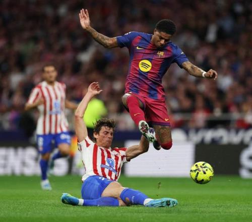 第35分鐘巴薩前場打出精妙配合,亞馬爾的巧射被立柱拒絕,逃過一劫的馬競,第39分鐘率先取得進(jìn)球,小西蒙尼接到朗格萊長傳后,冷靜推射建功,幫助馬競?cè)〉?-0的領(lǐng)先,不過僅僅過了3分鐘,拉什福德就和隊友打出撞墻配合,低射打穆索小門,將比分追至1平,半場結(jié)束前,岡薩雷斯防守端絆倒亞馬爾,被主裁直接紅牌罰下。
