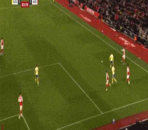 第35分鐘,南安普頓后場(chǎng)反擊,布里送出傳中,禁區(qū)內(nèi)本懷特冒頂失誤送禮,斯圖亞特笑納大禮破門(mén),阿森納0-1落后。